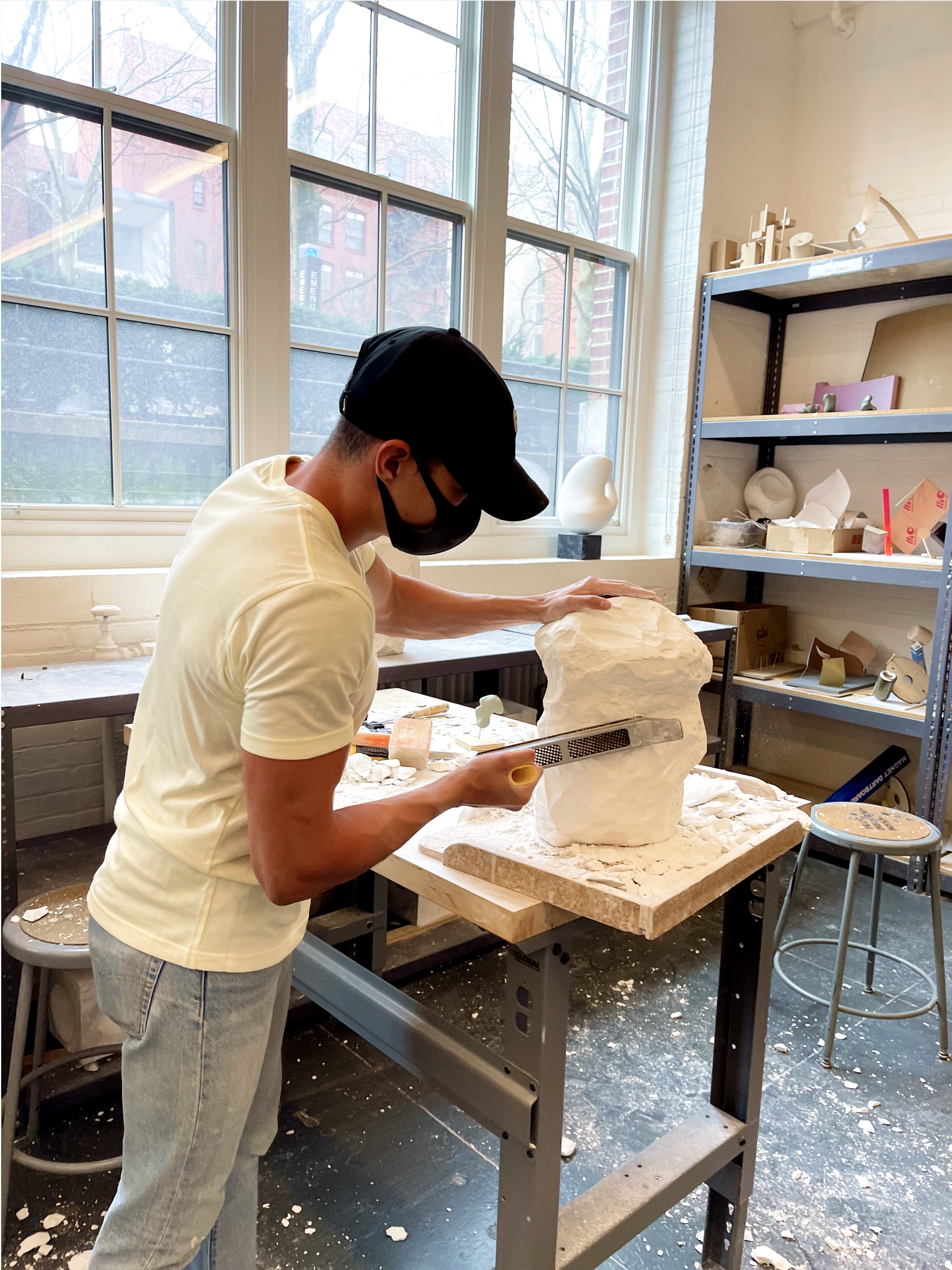 Dance-related plaster sculpture that explores the concave effects of movement.