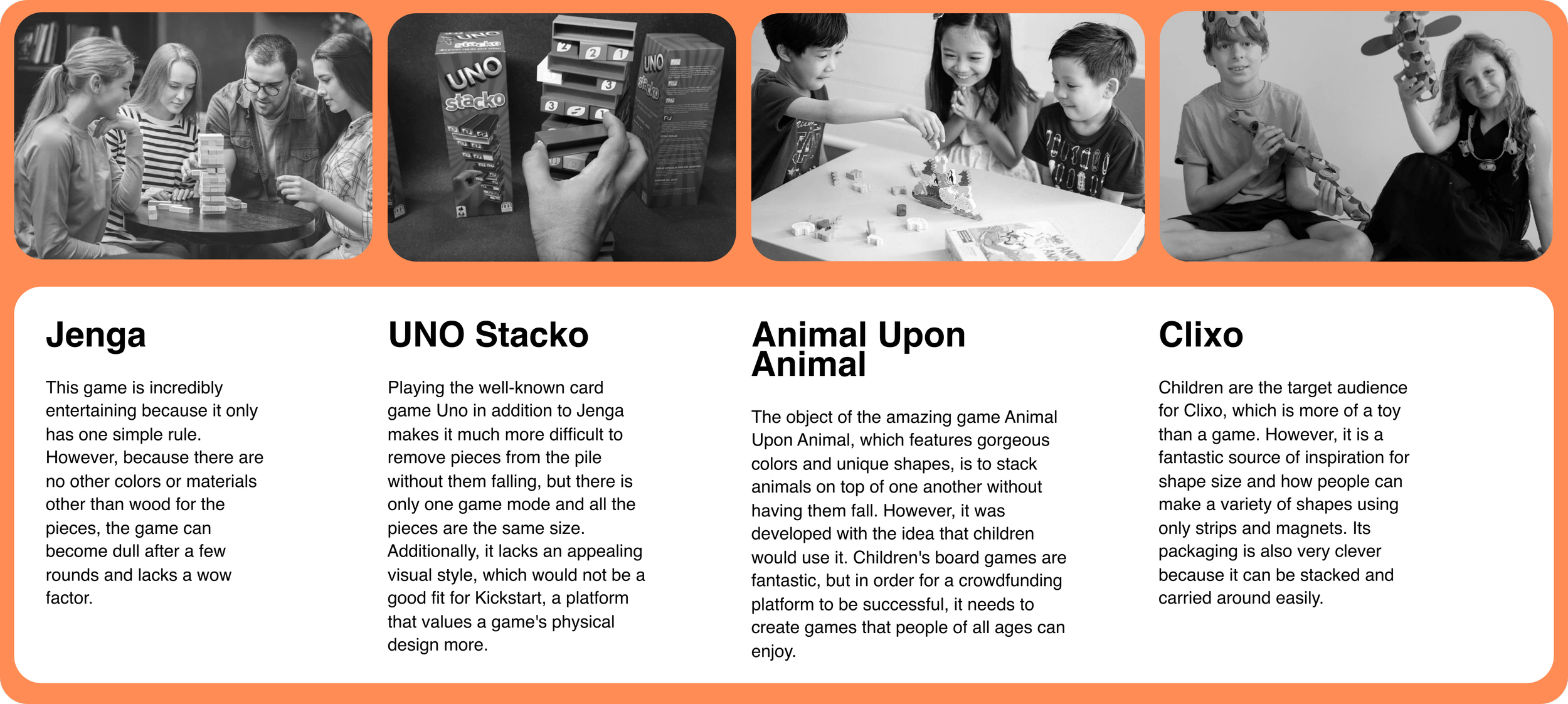 Due to language barriers, I found it extremely challenging to socialize when I first arrived in the U.S. All of the students at the language school I attended were encouraged to play board games because they made it simpler to socialize with others. However, a lot of these games required players to understand complex rules, so they would only participate in the simpler games. As a result, rather than a game with a ton of rules like monopoly, the board game I wanted to create had to be more of a physical game that relied on eye and hand coordination.
